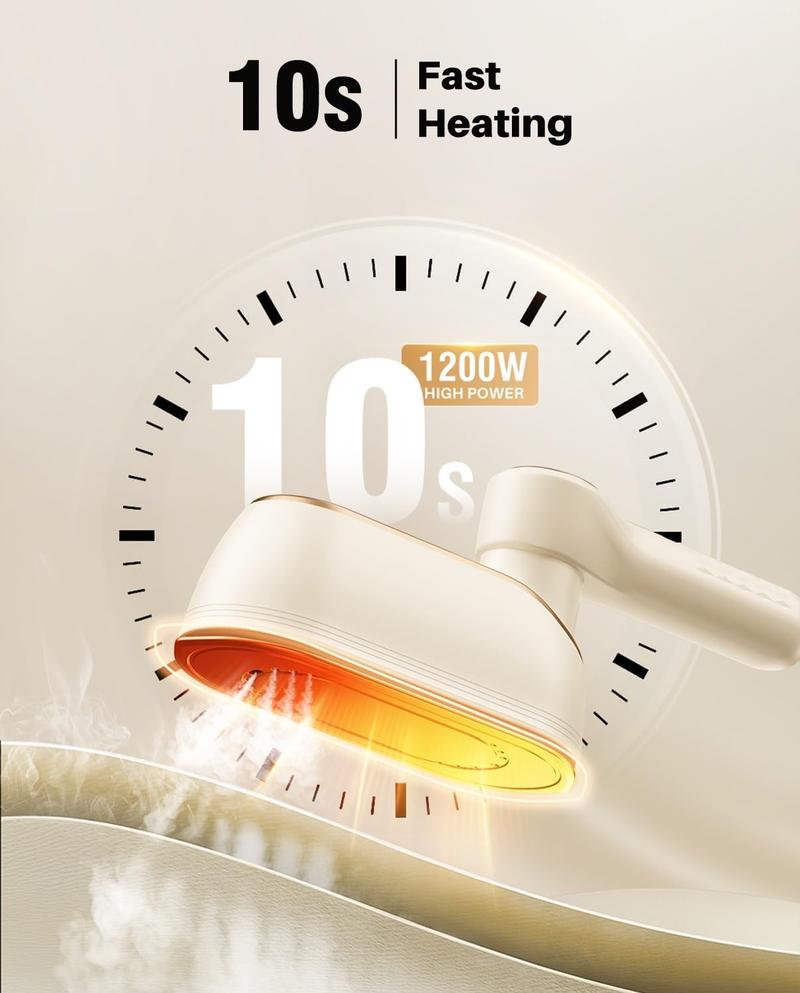 ·2-in-1 Functionality: This clothes steamer combines the precision of flat ironing with the convenience of steaming in one portable device. Whether you need to smooth out collars or quickly remove wrinkles from hanging clothes, this professional tool delivers fast, effective results. Compact yet powerful, it’s your all-in-one solution for effortless clothing care at home or on the go·3 Mode Steaming: With three adjustable steam modes, this garment steamer adapts to all your fabric needs—from delicate wool and lace to sturdy cotton. The multi-mode settings provide powerful wrinkle removal while gently protecting your clothes, ensuring safe and effective ironing every time·10-Second Fast Heat: Powered by a 1200W heating system, this steam iron heats up in just 10 seconds for ironing the toughest wrinkles effortlessly. Perfect for busy mornings or last-minute touch-ups, it’s a convenient time-saver that delivers efficient ironing sessions, keeping your clothe, dress, or shirt looking pristine in no time·Smart LCD Screen: The smart LCD screen makes ironing a breeze, clearly displaying your selected ironing mode, preheat countdown, and adjustable steam settings (high, medium, low). Tailor the steam to suit any clothing or laundry need—whether it’s a quick refresh or deep wrinkle removal. With this rotatable, handheld steamer, you get professional control and precision at your fingertips·Travel-Friendly Design: Designed for life on the move, this compact and lightweight steamer features a 180° foldable handle for easy storage, slipping effortlessly into your suitcase or drawer. Whether at home, in a dorm, or traveling, this portable mini device keeps your fabric, curtain, or hat wrinkle-free, ensuring you stay polished wherever you go. It’s the ultimate travel companion for flawless