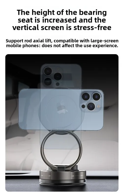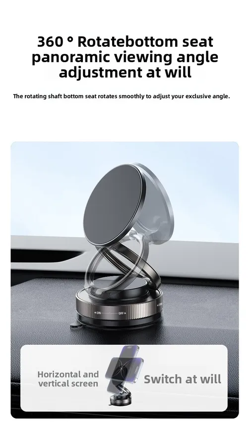 360 ° Adjustable Vacuum Magnetic Phone Holder, Suitable for Car Gym Mirror Shower, Super Strong Suction Cup - Universal Car Mount, Compatible with All Smartphones and Vehicles