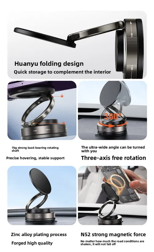 360 ° Adjustable Vacuum Magnetic Phone Holder, Suitable for Car Gym Mirror Shower, Super Strong Suction Cup - Universal Car Mount, Compatible with All Smartphones and Vehicles 247 sales
