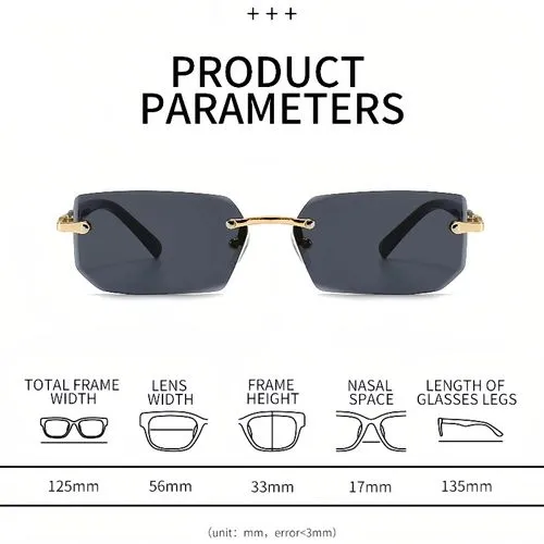 - Product Specifications: The total width of the frame is 125mm, lens width is 56mm, frame height is 33mm, nose spacing is 17mm, and temple length is 135mm, making them suitable for most face shapes.