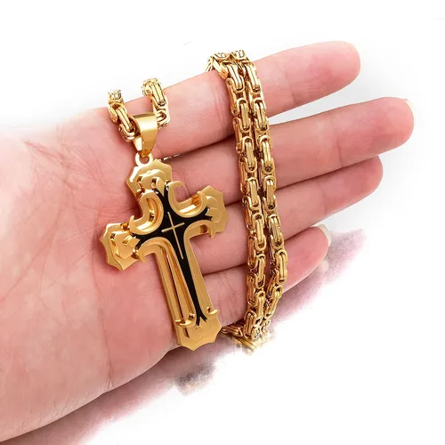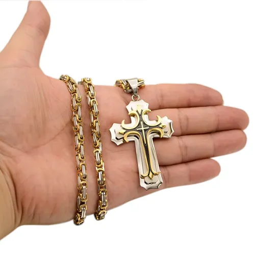 Luxury gold and silver holy cross stainless steel cross Jesus pendant necklace titanium steel hollow pendant religious Cuban chain